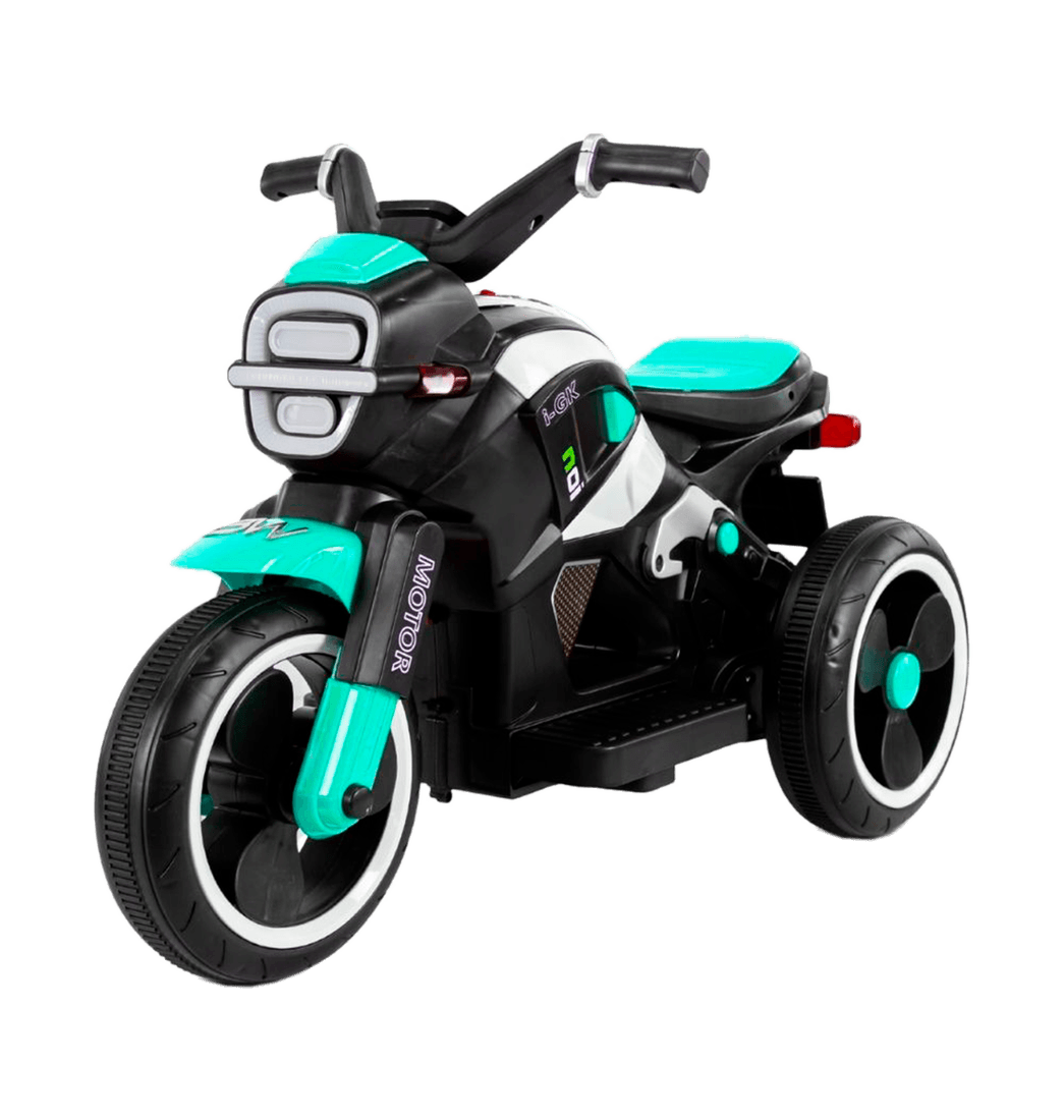 Incluye Moto eléctrica montable tipo Trimoto infantil de diseño futurista.
