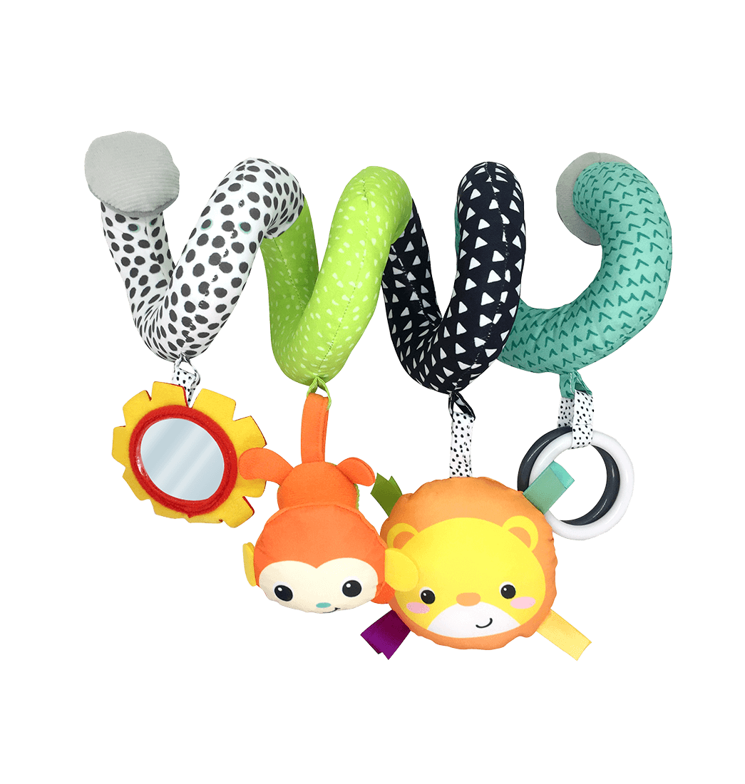 Ahora los días de paseo serán increíbles para tu bebé gracias a este hermoso Móvil portátil con diseño en espiral. Gracias a su forma podrás engancharlo de forma fácil en la cubierta del coche para que tu pequeño se entretenga mientras dan un lindo paseo. También puedes usarlo en su cuarto a la hora de dormir para que sus noches seas tranquilas y alegres. Diseñado en materiales suaves y ligeros para mayor seguridad. ¡Aprovecha y llévalo! Recomendado de 0 meses en adelante.