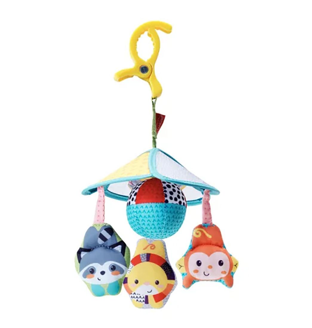 Acopla este móvil a tu cochecito para entretener a tu bebé en cualquier lugar. Estos simpáticos animales harán que tu bebé los agarre y los alcance; al levantar la vista, verá una bola colgante con sonido y una serie de patrones de alto contraste que se reflejan en el espejo. ¡No lo pienses más y anímate a llevarlo ahora!.