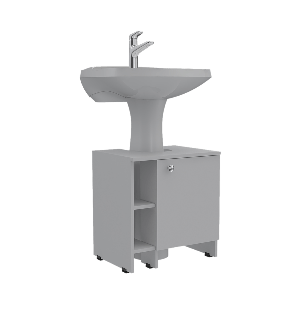 Complementa los muebles de tu baño con este práctico Mueble para lavamanos . Diseñado para instalar con lavamanos bajo pedestal, cuenta con una puerta abatible con entrepaño interior, deslizadores plásticos para no rayar el suelo, entrepaños laterales para objetos decorativos y es de fácil instalación.