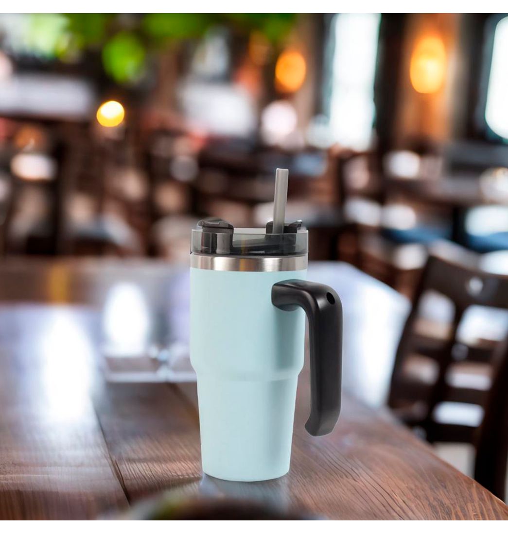 Mug Viajero con Asa Doble Pared Azul Claro 600ml - Ikhome