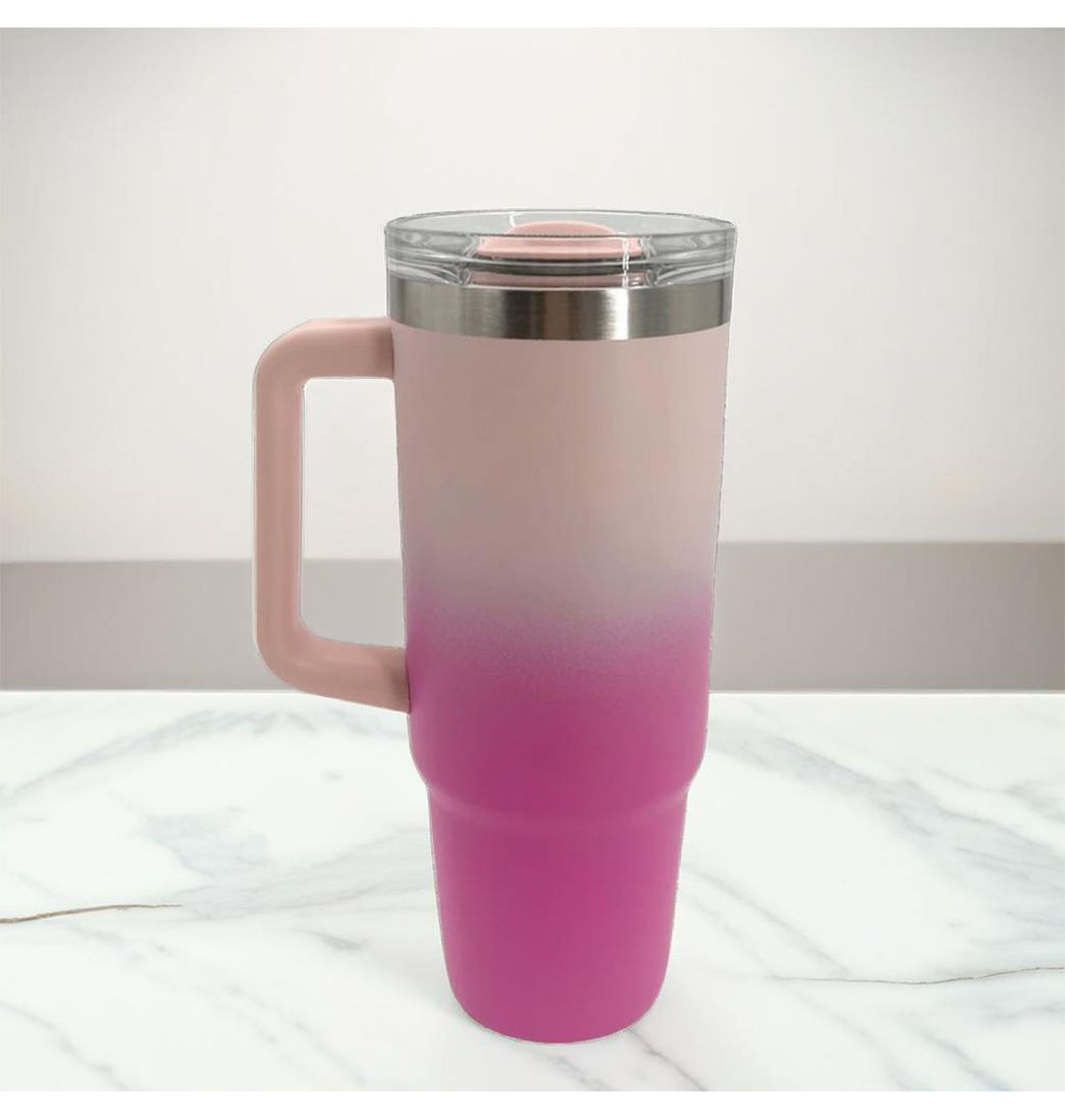 Mug Viajero con Pitillo Acero Inoxidable Rosa 890ml - Ikhome