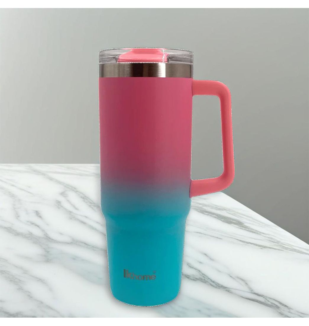 Mug Viajero con Pitillo Acero Inoxidable Rosa/Azul 890ml - Ikhome