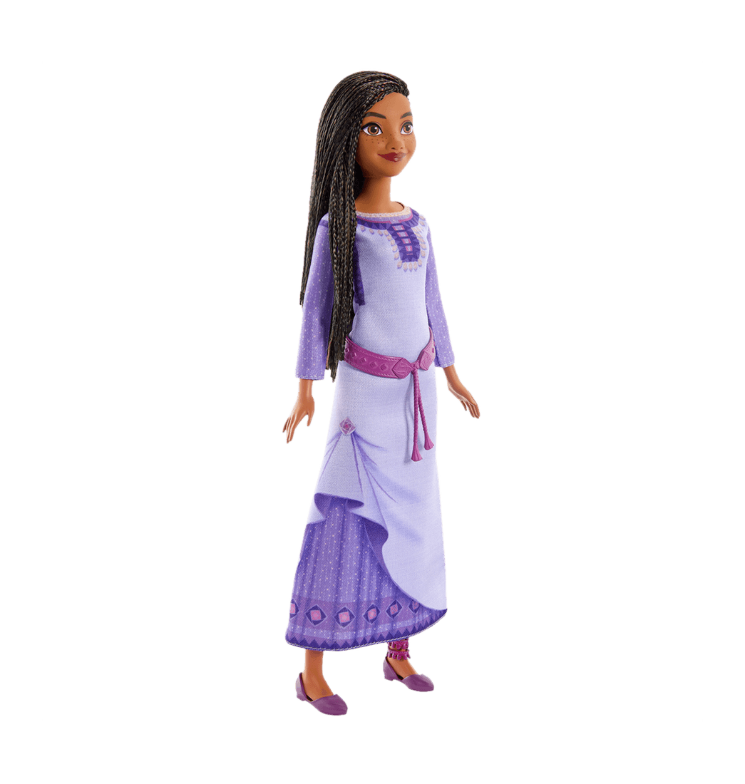 Inspirada en Wish de Walt Disney Animation Studios, la muñeca Asha de Rosas captura la magia y el amor del mágico musical animado! Con cinco articulaciones, un atuendo extraíble y accesorios, la muñeca de moda tiene el estilo característico del personaje con detalles fieles a la película, como su largo cabello trenzado.