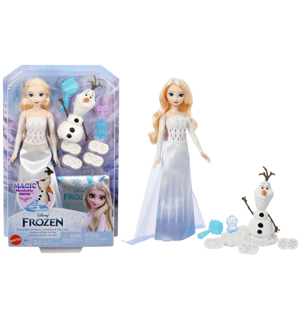 Inspirados en los personajes animados de la película Frozen 2 de Disney, ¡esta muñeca Elsa y la figura de Olaf están listos para vivir aventuras en la nieve mágica y moldeable!