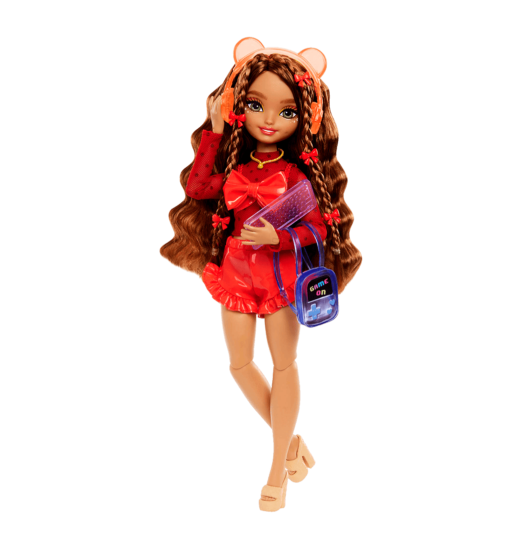Incluye 1 muñeca Barbie Dream Besties Teresa con top rojo de encaje, top rojo con moño, pantalones cortos rojos, zapatos, 5 pinzas para el cabello, 1 accesorio de audífonos, 1 lentes de sol, 1 celular, 1 funda de celular, 1 teclado, 1 mochila y 1 accesorio más.