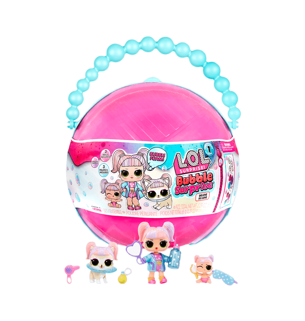 A todas las niñas fans de las muñecas LOL, les Presentamos ¡L.O.L. Surprise Bubble que cambia de color. Cada uno incluye una muñeca exclusiva, 1 Lil Sis, 1 Pet, 2 fabulosos atuendos, 2 pares de zapatos, una botella y una efervescencia que cambia de color.