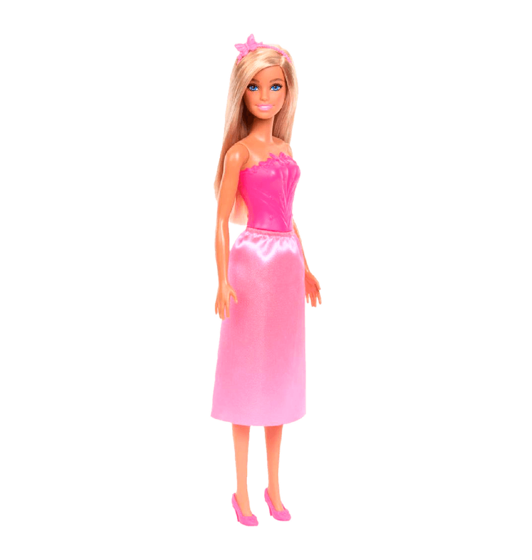 Incluye 1 muñeca de moda Barbie con falda, zapatos y diadema.