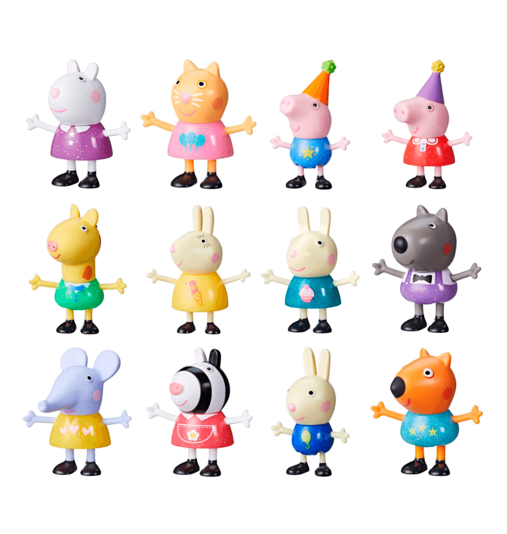 Consigue 1 de las 12 figuras de la fiesta de Peppa y sus Amigos y ¡que empiece la fiesta! Inspiradas en la serie, estas figuras a escala de 3 pulgadas permiten a los niños imaginar aventuras de fiesta. Cada una de las figuras de Peppa Pig lleva un atuendo único, festivo y brillante, perfecto para cualquier velada divertida. Estos juguetes para niños y niñas es un regalo fantástico para los fans a los que les encanta la serie de Peppa Pig.