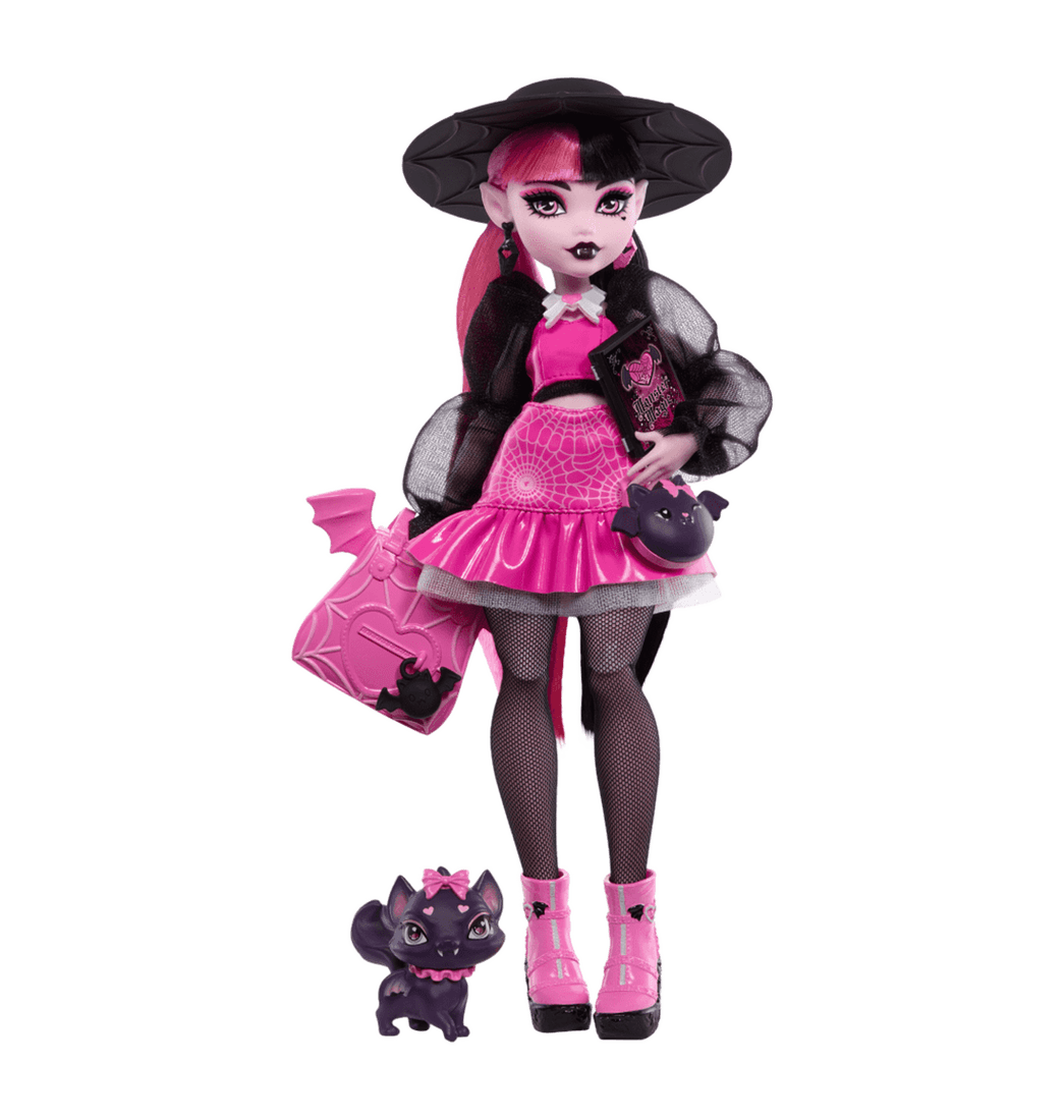 Desata el estilo más feroz con esta espectacular muñeca Draculaura de Monster High, la cual cuenta con su look monstruosamente fashion, accesorios icónicos y detalles increíbles. Draculaura se destaca por su personalidad dulce, alegre y llena de energía; perfecta para crear historias llenas de magia, amistad y mucha actitud.