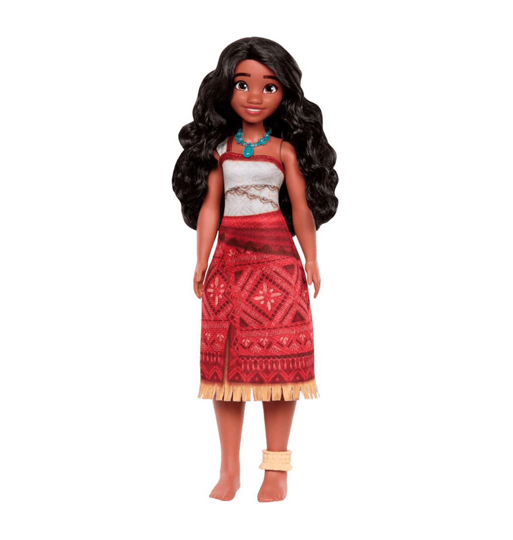 Incluye 1 muñeca Moana con top, falda, collar y pulsera tobillera.