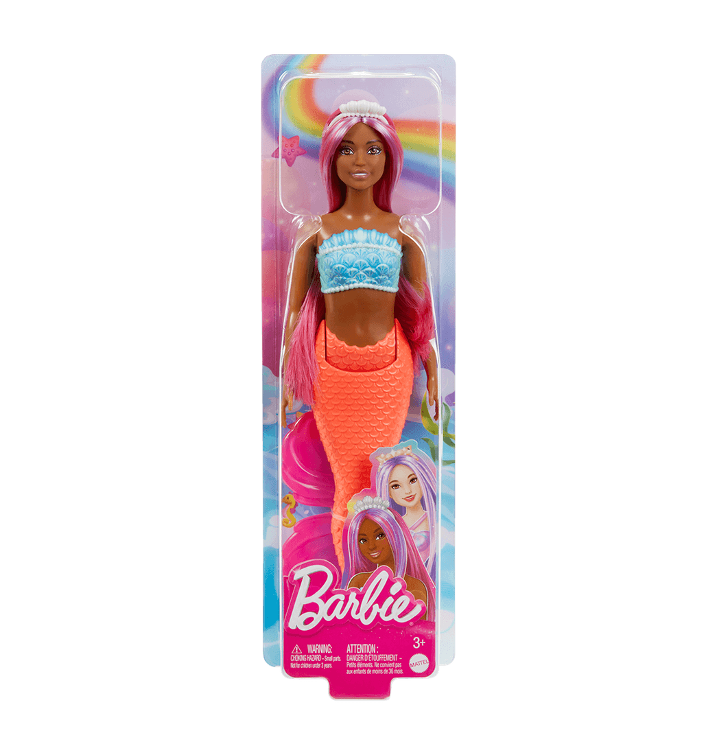 A las niñas les fascinará crear historias mágicas bajo el mar con las muñecas Barbie Fantasía Sirena. Cada una tiene un corsé de conchas, una cola moldeada y cabello de colores fantasía adornado con accesorios únicos. Las niñas pueden coleccionar diferentes sirenas y disfrutar de emocionantes aventuras acuáticas.