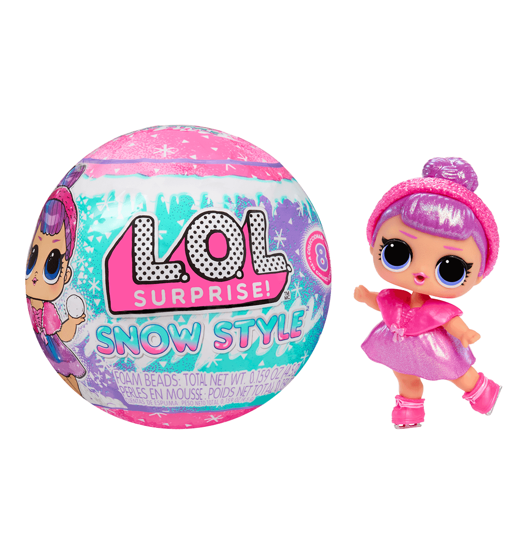 Descubre tu paraíso invernal. ¡Presentamos las L.O.L. Surprise! Snow Style Tots ¡8 muñecas con temática invernal listas para divertirse con bolas de nieve y lucir su estilo invernal! Sorpréndete con cada bola y descubre qué linda muñeca Tot tienes en cuanto abras la esfera.
