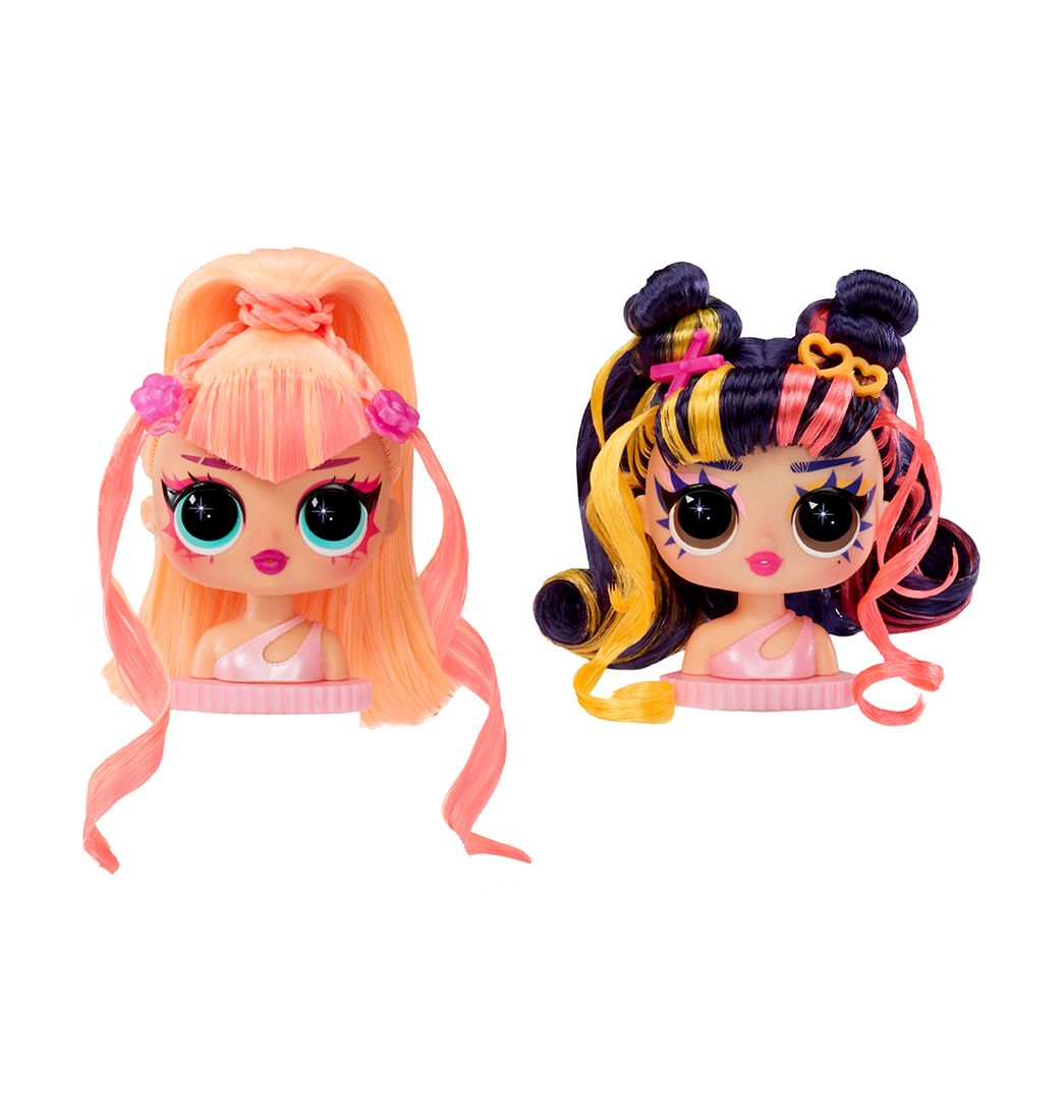 Presentamos el nuevo L.O.L. Surprise Tweens Surprise Swap Styling, cabezas intercambiables para tus muñecas swap con hermoso cabello y bonitos accesorios. Cada cabeza swap viene con un peinado único, cabello colorido y múltiples accesorios de peinado incluyendo adorables pinzas para el cabello y un peine para crear un sinfín de estilos y transformaciones de cabello.