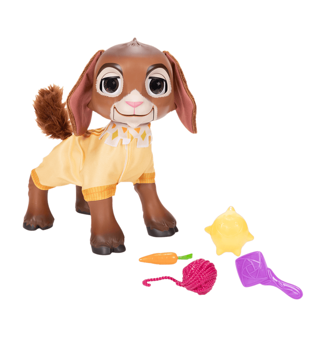 El lindo personaje de la película Wish de Disney Valentino, mueve y dice hasta 15 frases diferentes. Niños y niñas podrán recrear un montón de lindas historias junto a este muñeco interactivo con el cual podrán divertirse donde quiera que vayan. Es un regalo para niños perfecto en navidad, cumpleaños cualquier fecha especial.