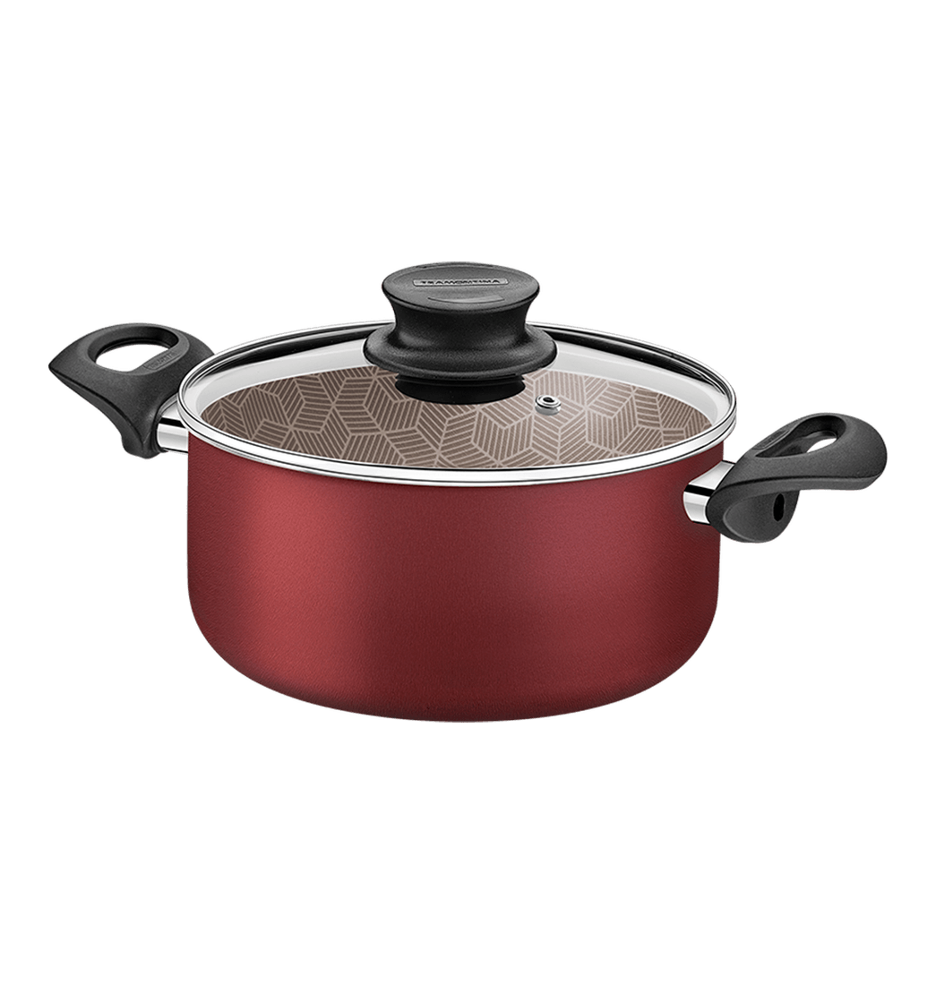 Olla Antiadherente con Tapa de Vidrio Paris Rojo 20 cm - Tramontina