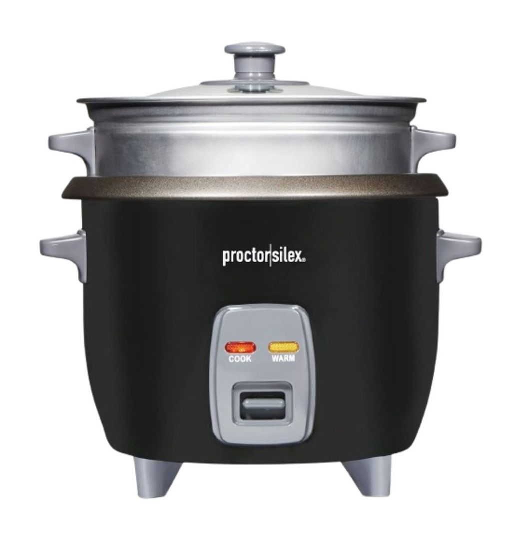 Prepara fácilmente guarniciones o comidas individuales con la olla arrocera y vaporera Proctor Silex de 6 tazas. Su tamaño es ideal para hogares pequeños, apartamentos tipo estudio o dormitorios, ya que puede cocinar hasta 3 tazas de arroz crudo, rindiendo aproximadamente 6 tazas una vez cocido. Es perfecta para quienes cocinan para una o dos personas.