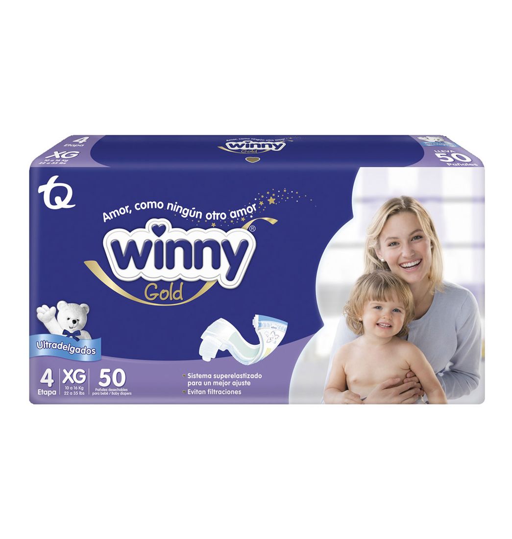 Ofrece mayor protección a tu pequeño con los Pañales Gold de Winny, con sistema ultrabsorbente con barras altas y cómodas, además tiene capa extra seca, cubierta tipo tela con diseños, bandas respirables, cinta pega y despega y cintura elastizada. Incluye 50 pañales. ¡No esperes más, y adquiérelo ahora!.