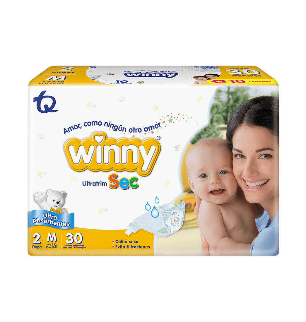 Bríndale la mayor protección a tu pequeño con los Pañales Ultratrim Sec de Winny, diseñados con un sistema ultra-absorbente para un mayor cuidado de la piel de tu bebé. Los pañales cuentan con cintura con bandas respirables elastizadas, barreras altas y capa extra-seca con cubierta tipo tela que mantiene seca la colita de tu bebé, ofreciéndole protección, tranquilidad y comodidad. Incluye 30 pañales y 10 toallitas húmedas. ¡Anímate y adquiérelo ahora!.