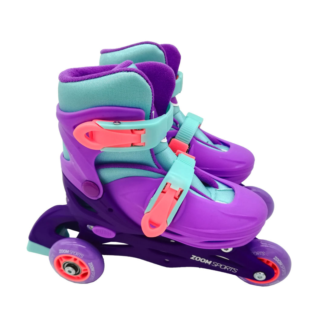 Los patines Fast de Zoom son ideales para los niños en el aprendizaje del patinaje, ayuda a la transición a patín en línea ya que es 2 en 1 convertible de un patín tradicional pasa a ser fácilmente un patín en línea, permitiendo al niño adquirir confianza, su bota rígida es ideal para ayudarle mantener el equilibrio y protegerlo de lesiones en el tobillo, con un forro interior en espuma que brinda comodidad. Su talla es ajustable en 4 números, tanto la bota rígida como la bota blanda se extienden al número ideal. Talla SS con 3 ruedas para colocar en línea o en triangulo.