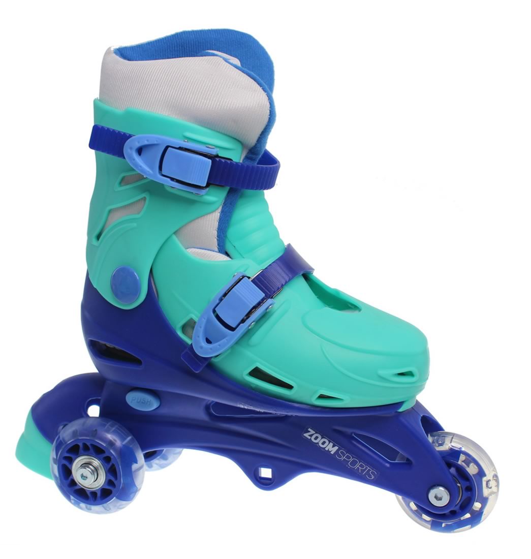 Los patines Fast de Zoom son ideales para los niños en el aprendizaje del patinaje, ayuda a la transición a patín en línea ya que es 2 en 1 convertible de un patín tradicional pasa a ser fácilmente un patín en línea, permitiendo al niño adquirir confianza, su bota rígida es ideal para ayudarle mantener el equilibrio y protegerlo de lesiones en el tobillo, con un forro interior en espuma que brinda comodidad. Su talla es ajustable en 4 números, tanto la bota rígida como la bota blanda se extienden al número ideal.