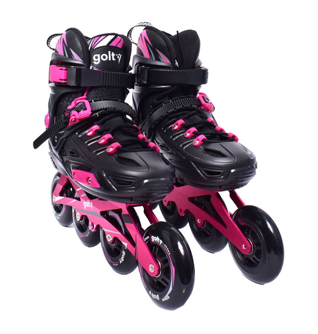 Estos fabuloso Patines Skate Max de Golty cuentan con un diseño de 4 niveles de tallas ajustable, chasis de aluminio liviano de alta tenacidad lo que permite una mayor tolerancia y fluidez de giro. Cuentan con rodamientos abec-11 silencioso y resistente al desgaste, ruedas pu 82a (80 a 90 mm) y bota interna removible.