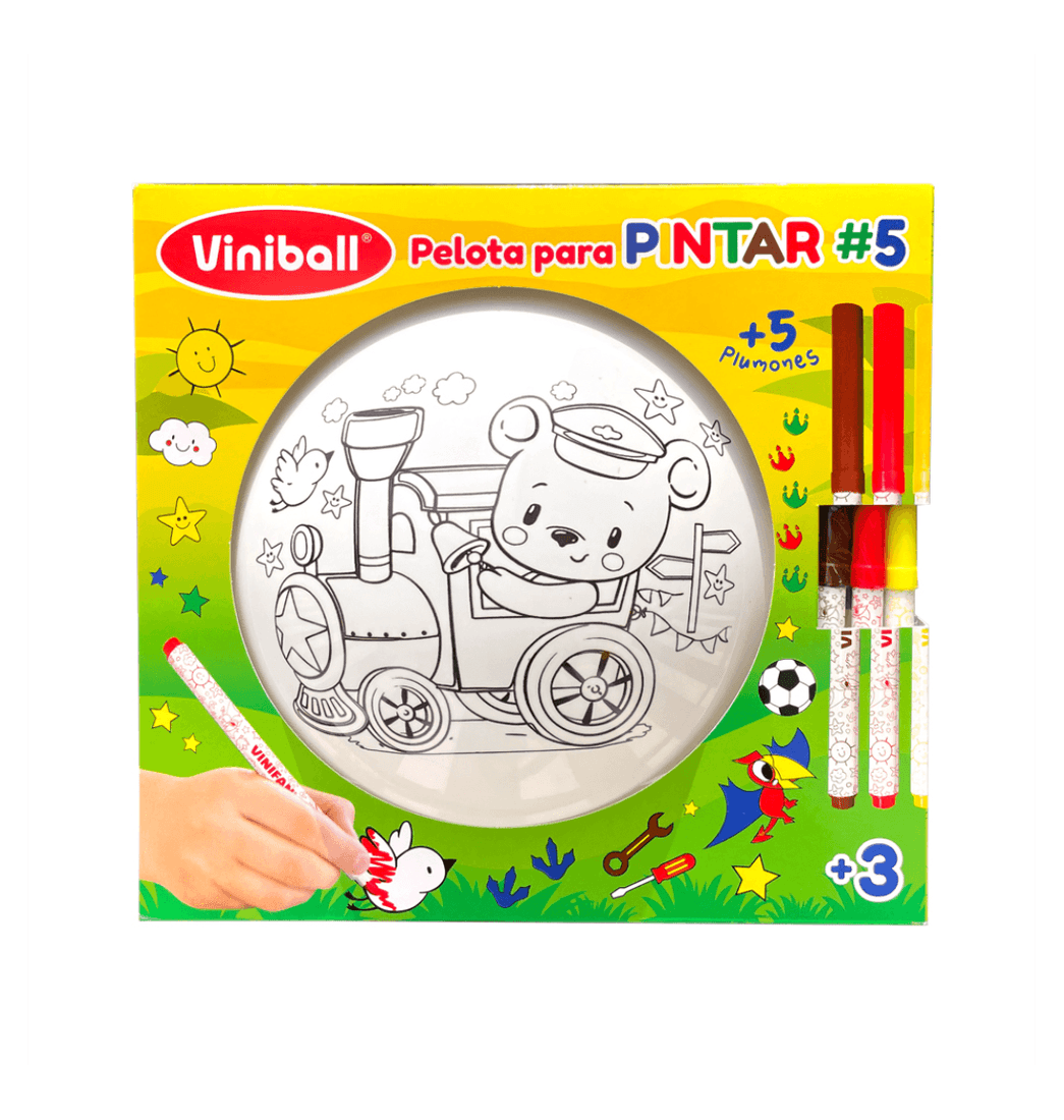 ¡Personaliza tu pelota con los colores que tu quieras y dale al personaje su propia identidad! Viniball te trae un divertida pelota en fondo blanco y con la silueta de un divertido estampado para que tu le pongas el color y sea como tu quieres.