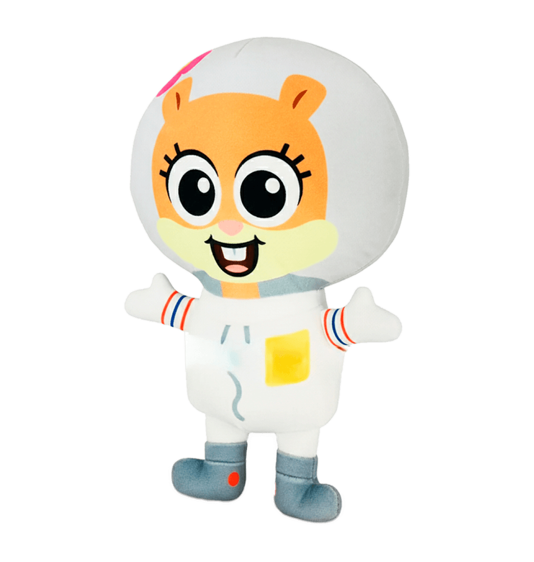 Si eres fanático de Bob Esponja y su entrañable amiga Arenita Mejillas, este peluche es perfecto para ti. Representando a la intrépida ardilla que vive en Fondo de Bikini, este muñeco de felpa destaca por su adorable diseño con el clásico traje espacial, su gran sonrisa y su icónica flor rosa en el casco.