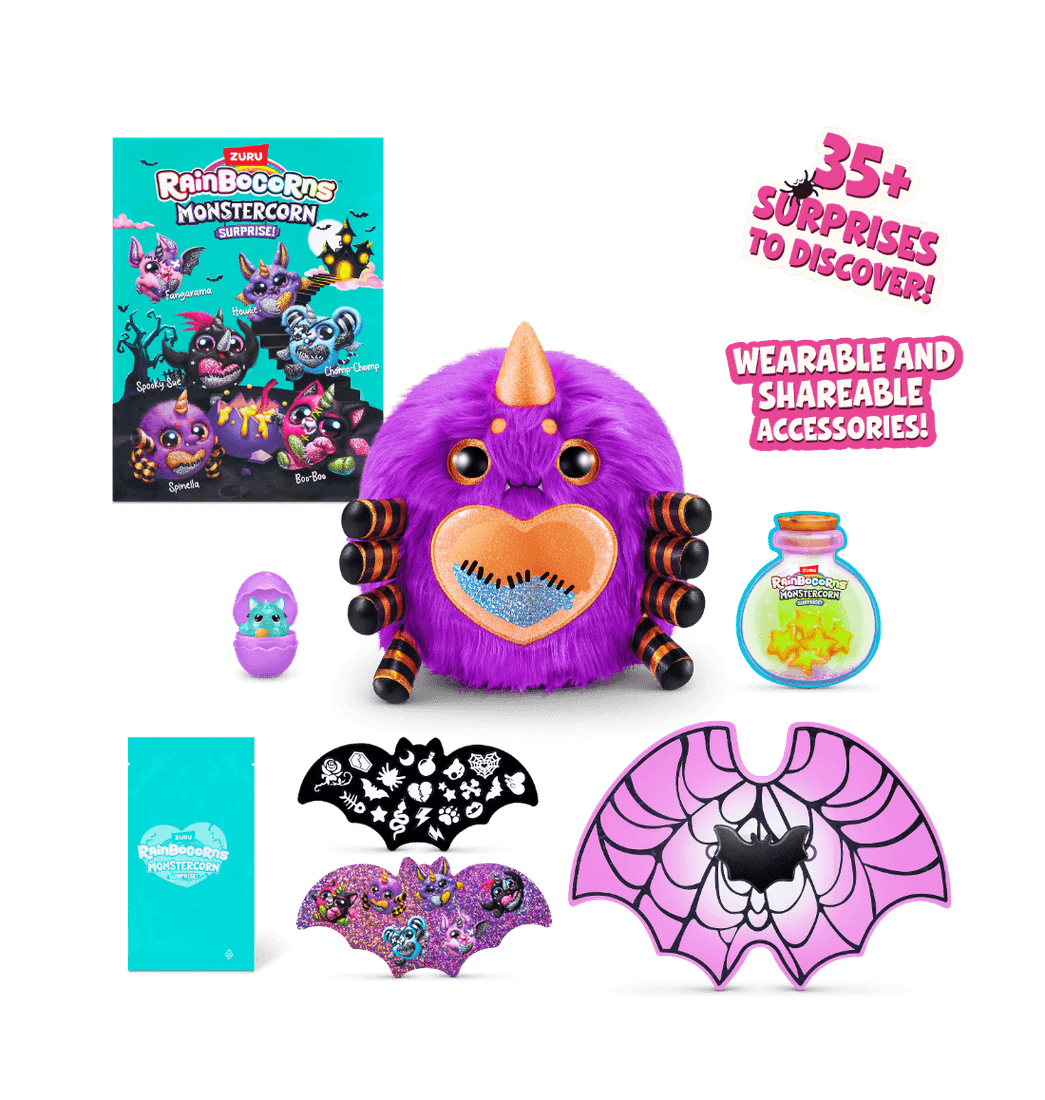Adéntrate en el espeluznante mundo de Monstercorns. Estas irresistibles criaturas guardan en su interior 35 deliciosas sorpresas. Colecciona los seis Monstercorns, cada uno con su propio encanto especial que los hace demasiado lindos para asustar. Transfórmate y transforma a tu Monstercorn en una criatura espeluznante con alas de murciélago que se pueden usar y compartir.