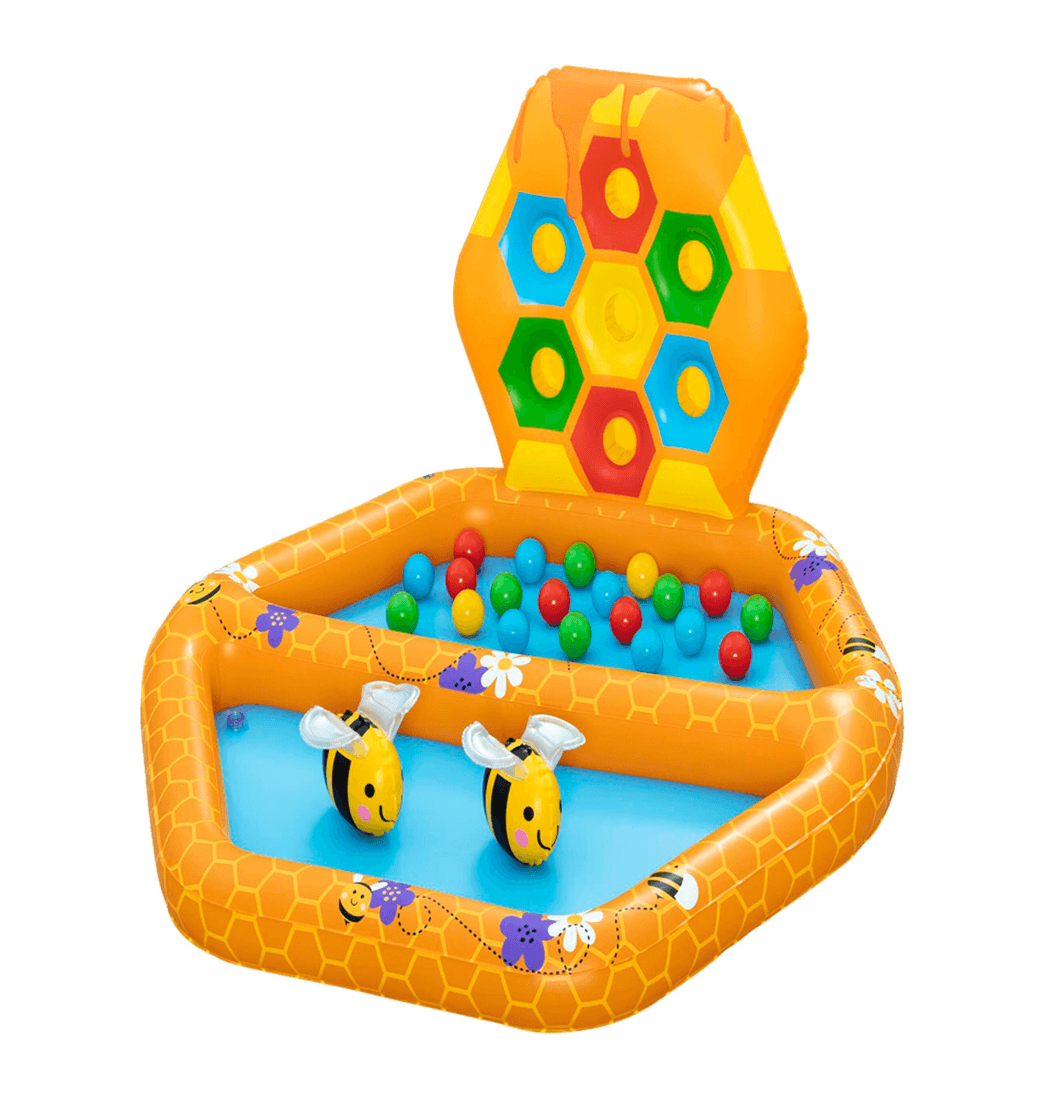 Contenido: 1 piscina de bolas, 2 abejas, 20 bolas de juego, parche de reparación.