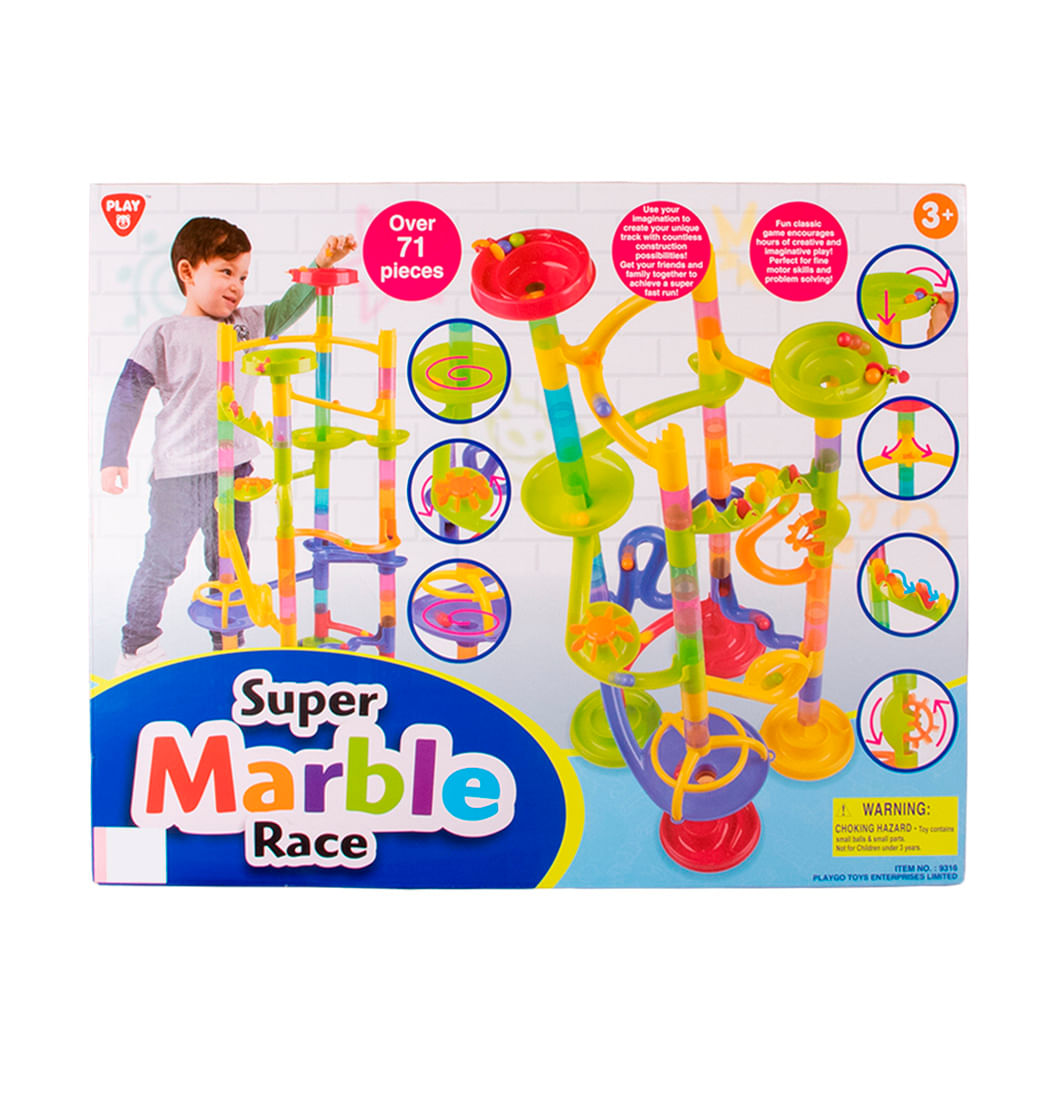 Ahora tu hijo podrá compartir con amigos y familiares de las más divertidas y emocionantes carreras de canicas con esta espectacular pista, la cual cuenta con un fabuloso diseño en colores llamativos y 71 piezas para que tu pequeño cree pistas únicas con una infinidad de posibilidades y obstáculos. Es ideal para el desarrollo de la motricidad fina y aprender a resolver problemas ¡Anímate a adquiérelo ahora!