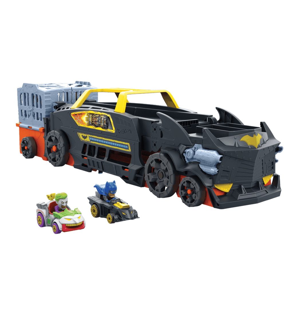 Lleva la acción del Hot Wheels RacerVerse a todas partes con este enorme camión temático de Batman que se transforma en una pista de carreras de tres carriles. El vehículo a gran escala cuenta con gráficos de Batman y puede almacenar hasta 20 vehículos Hot Wheels RacerVerse.