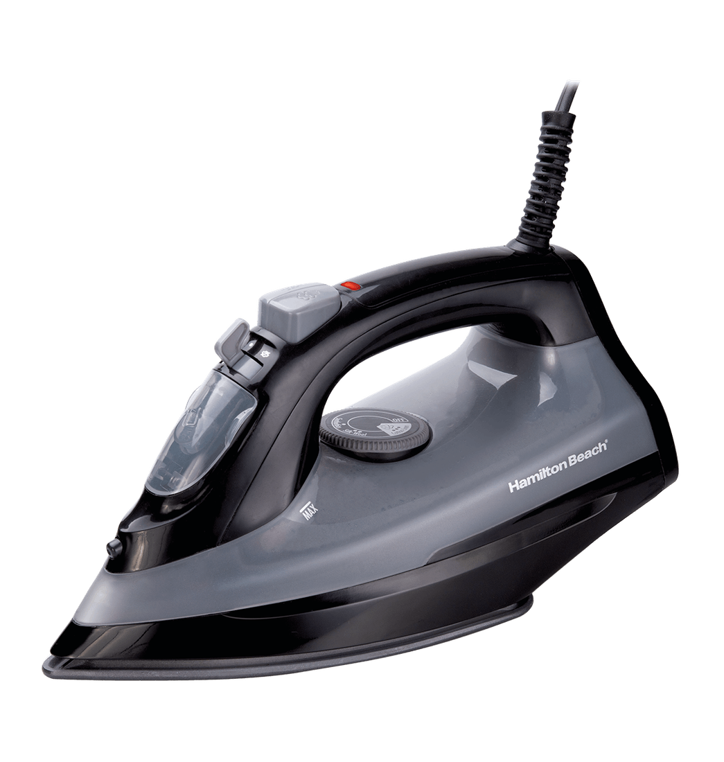 La plancha de vapor Hamilton Beach con suela antiadherente Extra-Glide se desliza suavemente sobre las telas sin que se peguen. Esta resistente plancha también cuenta con calentamiento rápido, diseño antigoteo y versátiles opciones de vapor que permiten planchar la ropa en la percha.