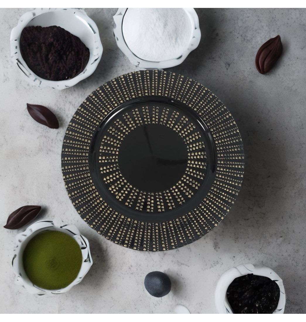 Plato Decorativo Plástico Negro y Dorado 33 cm - Ikhome