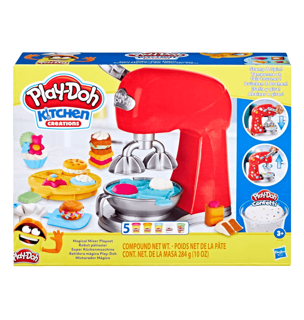 Crea increíbles pastelitos, galletas y tartas de juguete con la Batidora mágica Play-Doh de Kitchen Creations. Los aspirantes a pasteleros pueden jugar a hornear muchas golosinas colocando 1 de las bandejas de moldes Play-Doh en el bol removible, rellenando cada molde con masa para moldear y bajando la palanca para estampar raras galletas y tartas con formas alocadas. Encuentra en Pepe Ganga una gran variedad de juguetes para niños y niñas como los sets de Play-Doh. ¡No esperes más y anímate a llevar el Set Kitchen Creations Batidora Mágica!