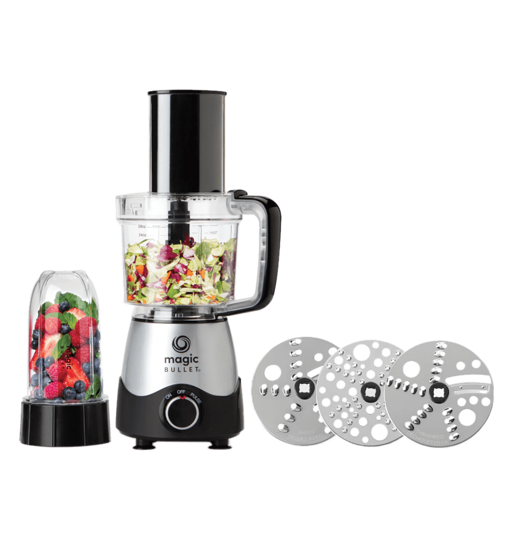 La Magic Bullet Kitchen Express es una combinación única de licuadora y procesador de alimentos en un solo dispositivo compacto. Con su motor potente y múltiples funciones, puedes picar, mezclar y procesar una gran variedad de ingredientes en segundos. Desde batidos y purés hasta ensaladas y salsas, esta herramienta es ideal para simplificar tus preparaciones diarias.