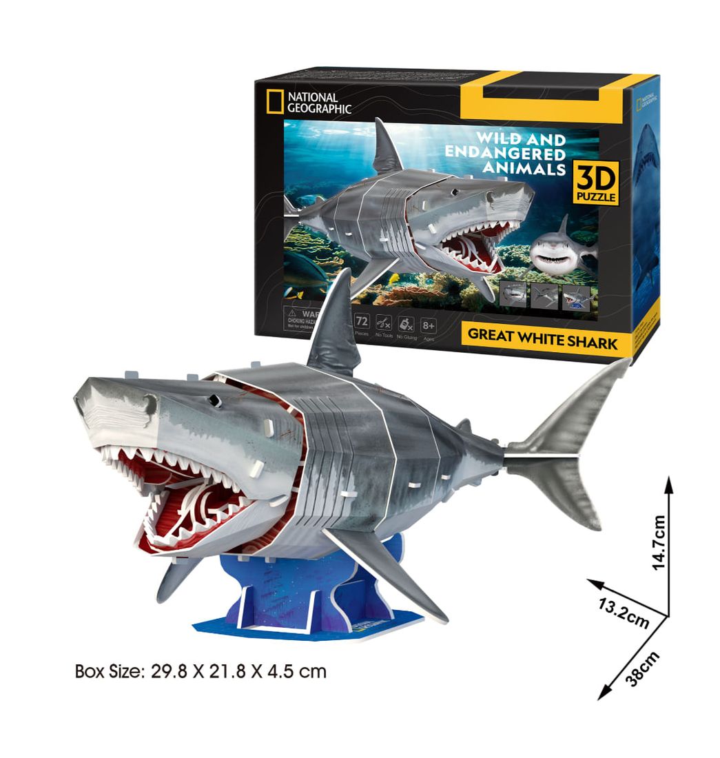Rompecabezas 3D Nv Intermedio 72 Piezas Tiburon Blanco - Cubic Fun