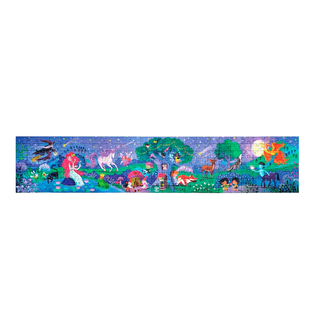 Visita una tierra mágica y encantada con este hermoso rompecabezas de piso. ¡Con 200 piezas que brillan cuando se apagan las luces! ¡Incluye 10 cartas con divertidos datos sobre criaturas mágicas!