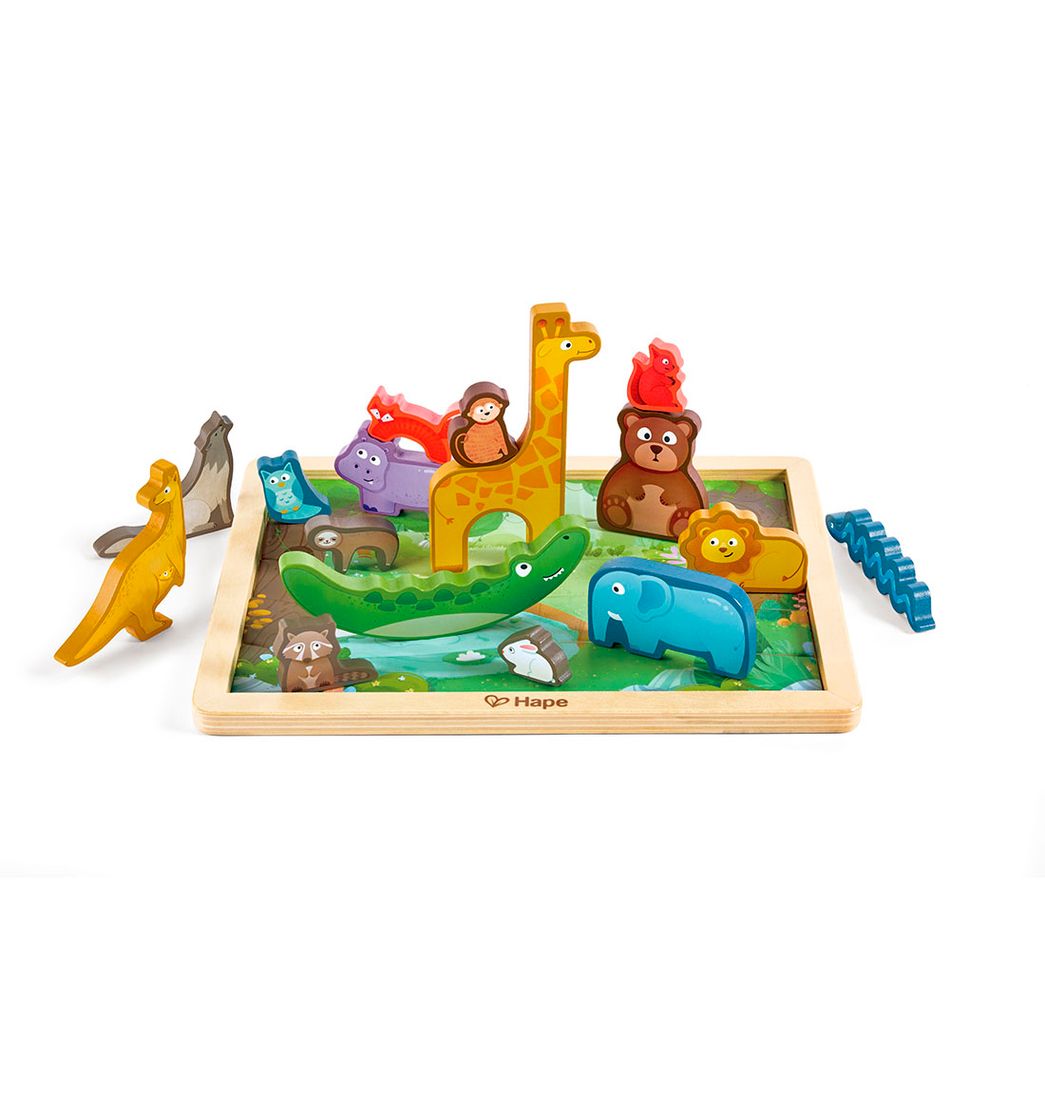 Con los juguetes de Hape, los más pequeños de casa pueden explorar, imaginar y desarrollar habilidades mientras se divierten en grande. Con este fabuloso Rompecabezas infantil los niños pueden elegir colocar a los animales dentro de un marco de madera o dejar que su creatividad fluya apilándolos en modos únicos e imaginativos.