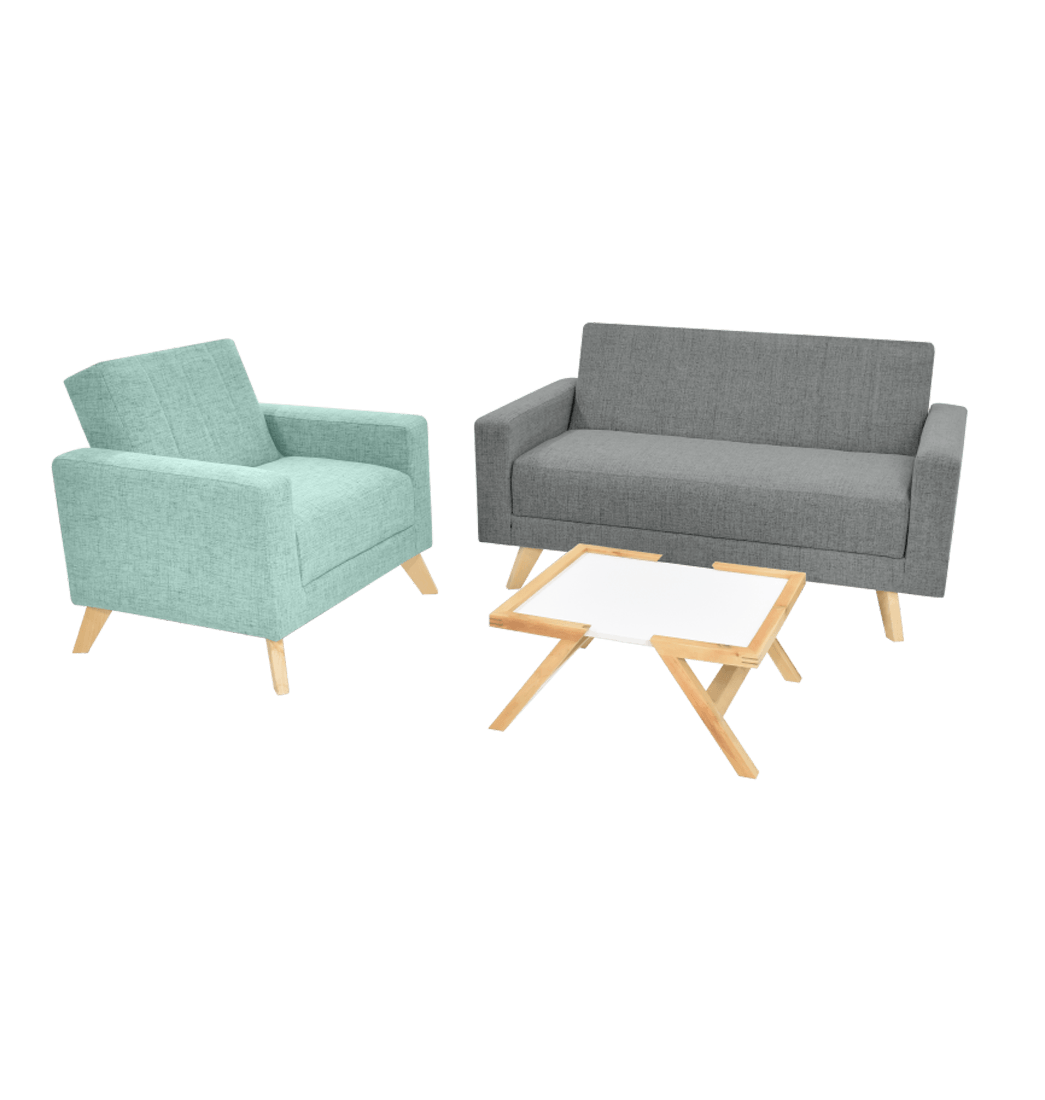 - Incluye: 1 sofá, 1 poltrona, 1 mesa de centro.