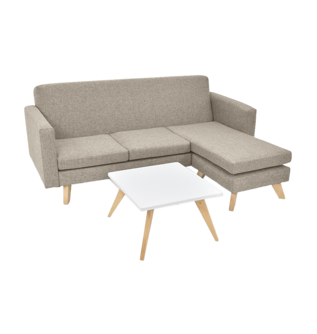 - Incluye: 1 sofá en L y 1 mesa de centro.