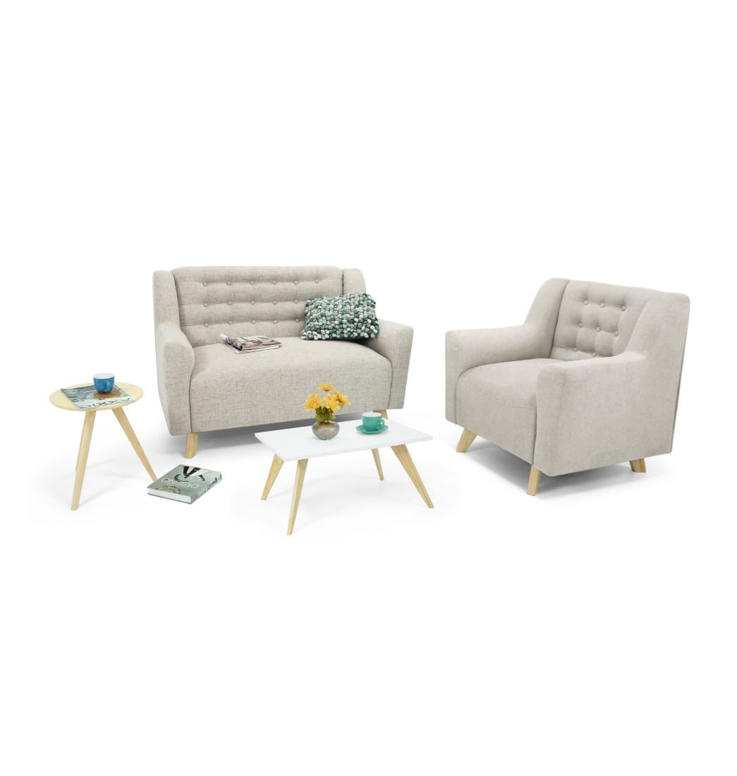 - Incluye: 1 Sofá, 1 Poltrona y 1 Mesa de centro (No incluye elementos decorativos).