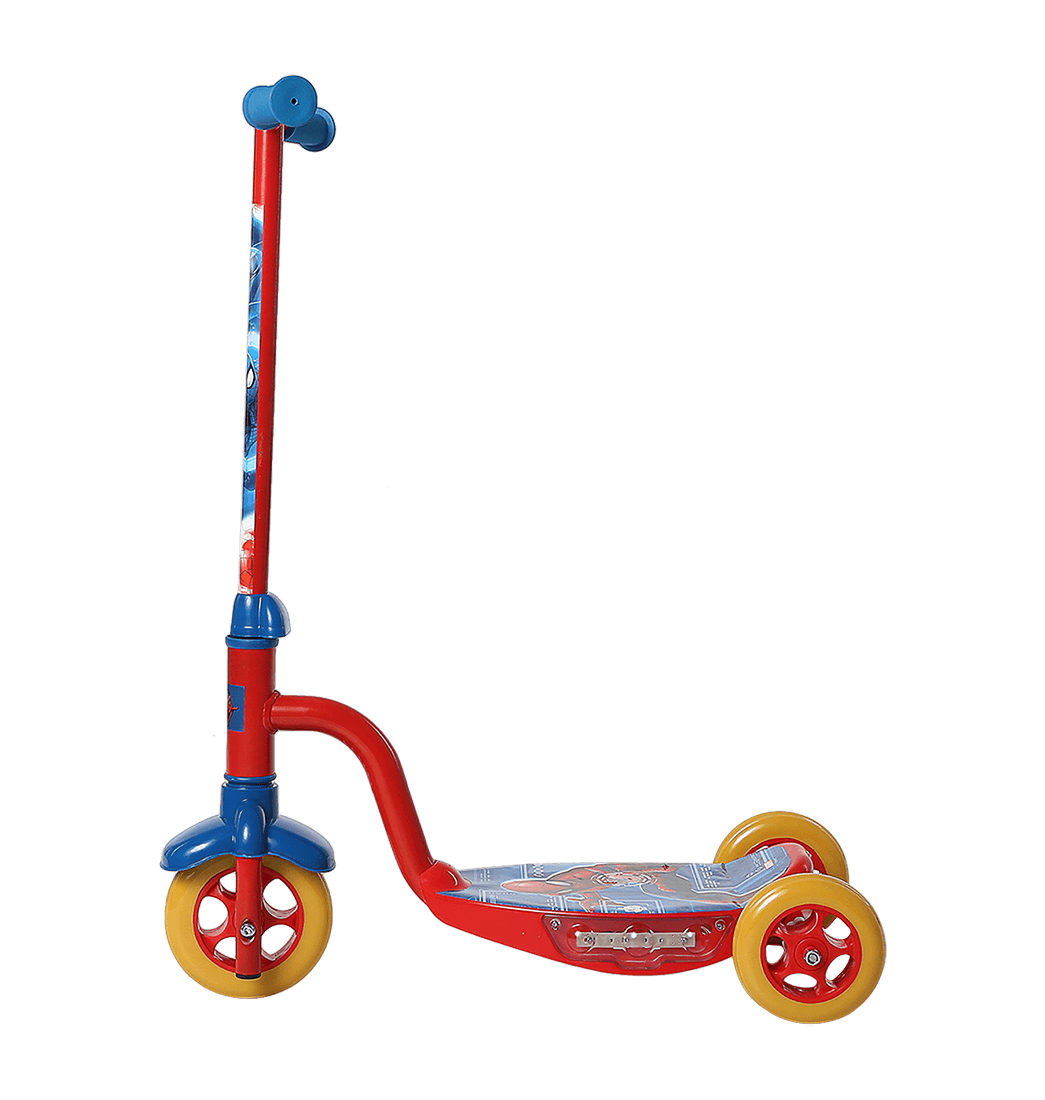 Divertida Tri-Scooter Flashing con gráficos de Spiderman, con luces en la plataforma que se activan por el movimiento, ideal para niños de 3+ años, cuenta con tres llantas de PVC, 1 adelante y 2 atrás, plataforma antideslizante ancha para mayor estabilidad y resistencia.