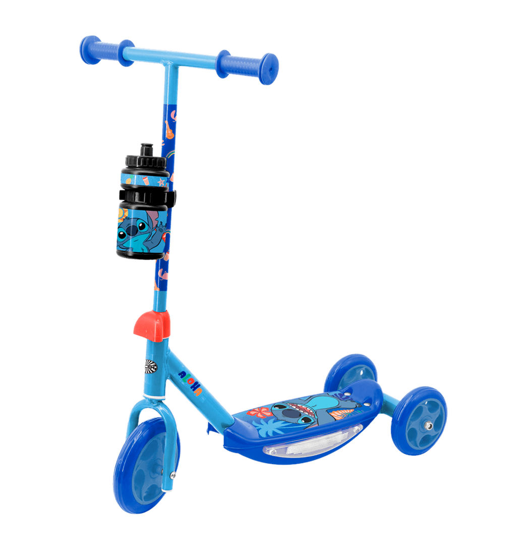 ¡La diversión sobre ruedas llega al estilo de Stitch ! Esta colorida scooter infantil cuenta con un encantador diseño y es perfecta para los pequeños fans de la película. Incorpora luces LED en las ruedas, creando un efecto brillante y llamativo.