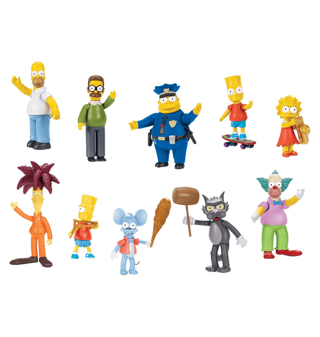Revive los momentos más icónicos de Los Simpsons con tus Personajes Favoritos. Inicia una colección única con estas fabulosas figuras perfectas para niños y coleccionista fans de esta famosa serie. Cada figura de los Simpsons cuenta con detalles auténticos y originales. ¡Colecciónalos todos!