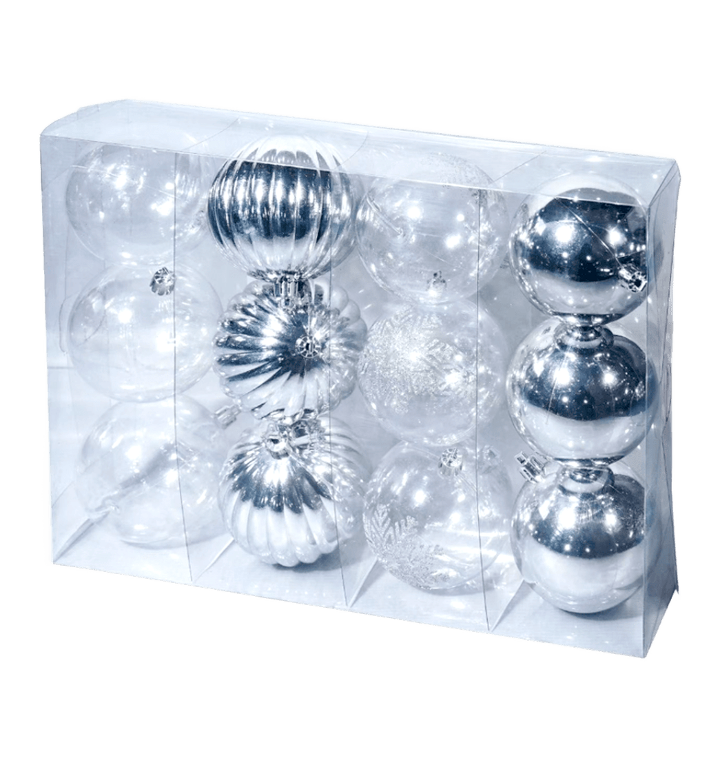 Set 12 Bolas Navideñas Decorada Plateada y Transparente 8cm - Aviva Home