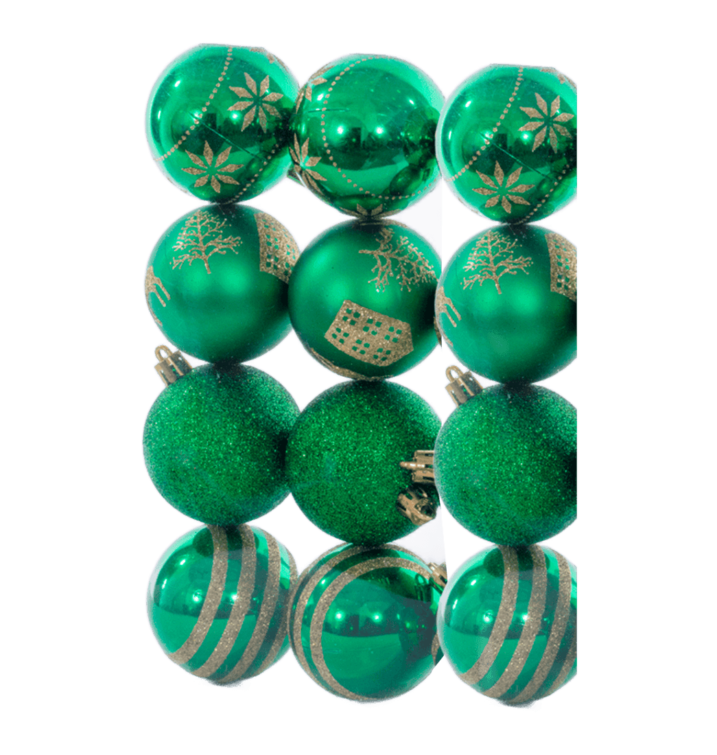Set 12 Bolas Navideñas Decorada Verde Blanco 6cm - Aviva Home