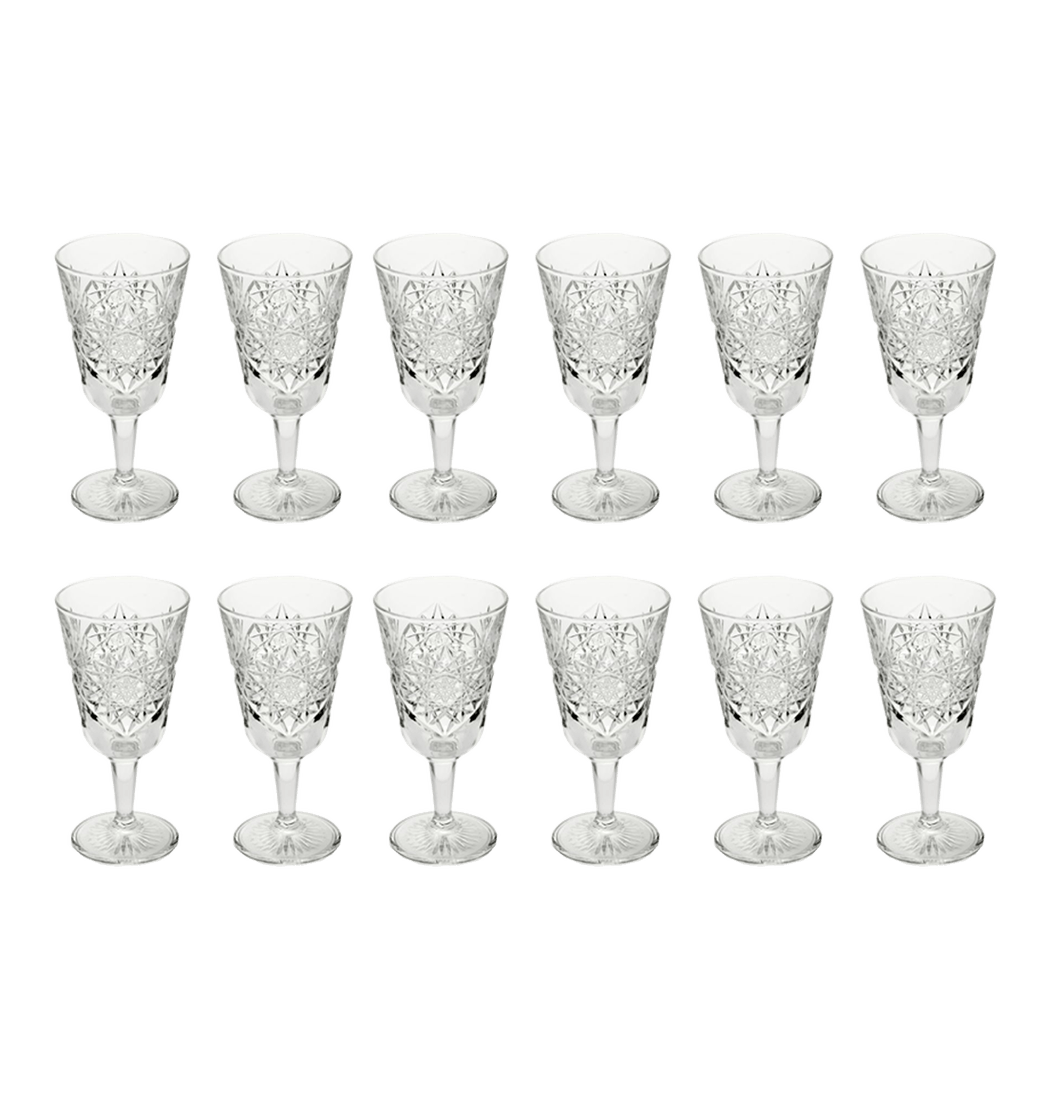 Nuestros productos están diseñados con la mejor calidad y cuenta con un estilo único e innovador para lucir increíble en tu mesa. El Set 12 Copas en Vidrio Hobstar está elaborado en vidrio y es perfecto para servir tu bebida favorita.