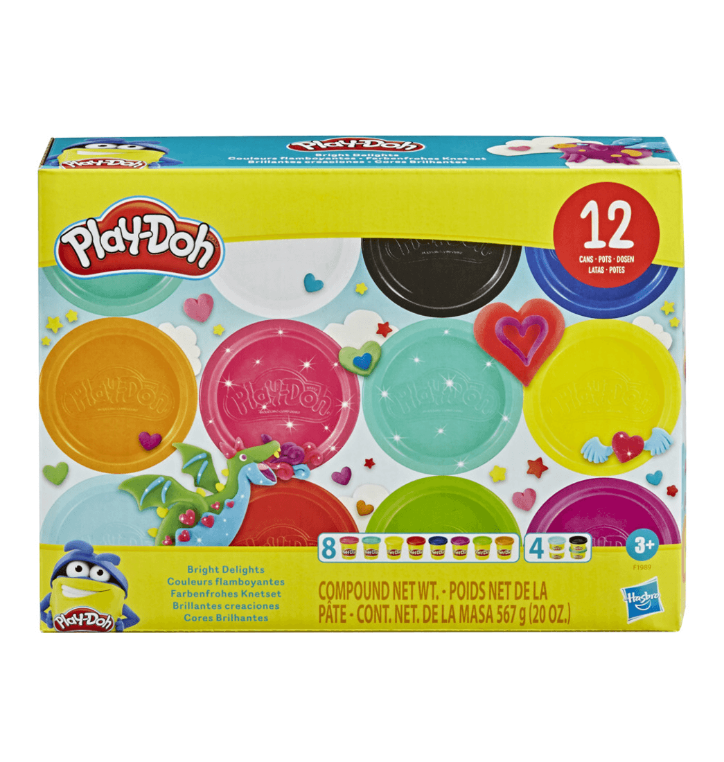 ¡Descubre la magia de la creatividad con Play-Doh Brillantes creaciones! Este set de 12 latas de masa para moldear Play-Doh clásica viene con latas de 28 y 56 gramos en distintos colores, además de un cuchillo de plástico para ayudar a los niños a crear. Añade un poco de resplandor con los 2 colores brillantes Play-Doh, y explora tu creatividad con toda una gama de colores, incluyendo el blanco y el negro. Este set es una fantástica actividad de manualidades, además de servir como repuesto de masa para otros sets (se venden por separado), ¡o simplemente un regalo divertido para niños y niñas para crear y compartir!