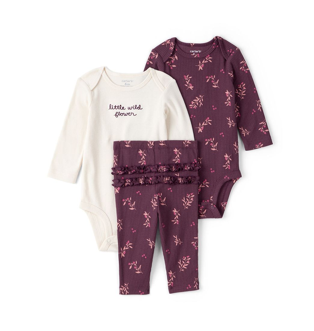 Set 2 Bodies Manga Larga y Pantalón Morado Bebés Niñas - Carter's
